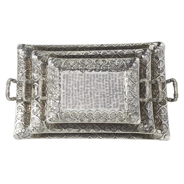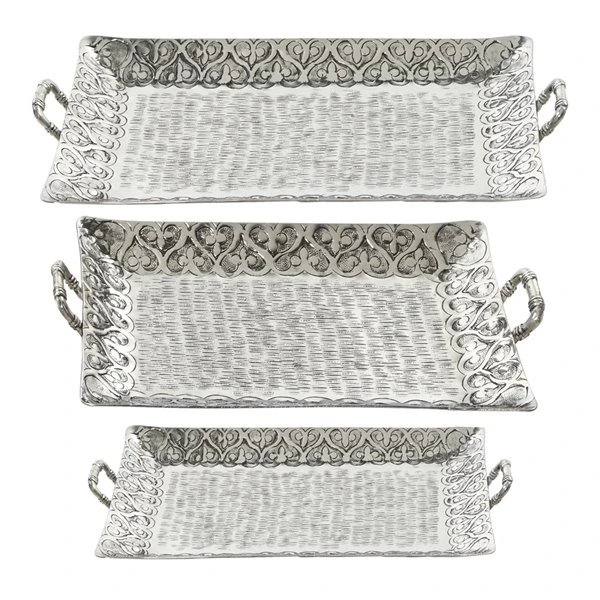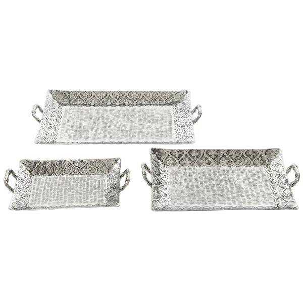 Grayson Lane Set of 3 23-in , 18-in , 15-in Traditional Tray – Silver – Aluminum