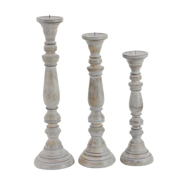 Grayson Lane Set of 3 23-in, 21-in, 18-in Traditional Candle Holder – Brown Mango Wood
