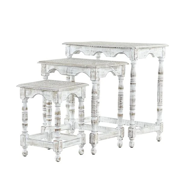 Grayson Lane Set of 3 24-in, 21-in, 16-in Eclectic Accent Table – White Mango Wood