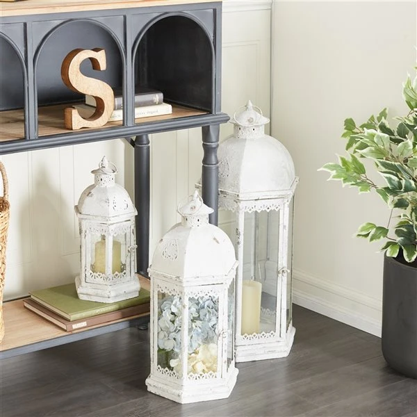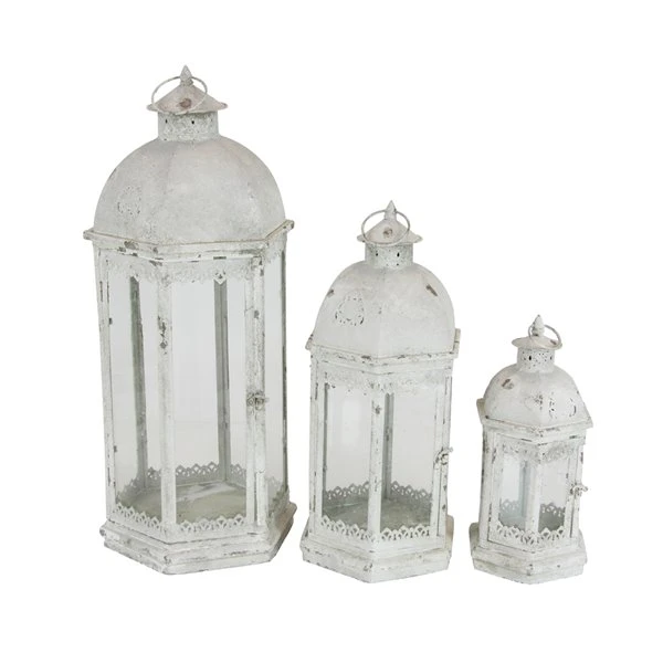 GRAYSON LANE Set of 3 29 In., 20 In., 14 In. Rustic Lantern White Metal