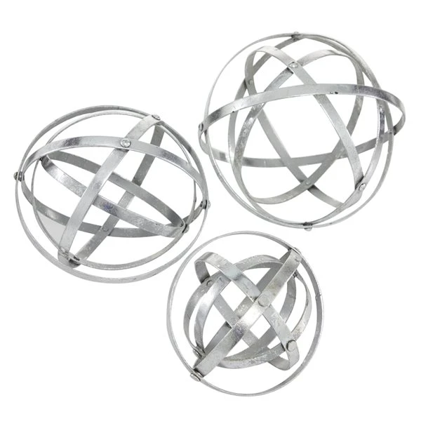 Grayson Lane Set of 3 6-in , 8-in , 10-in Silver Modern Orbs Balls Sculpture – Metal
