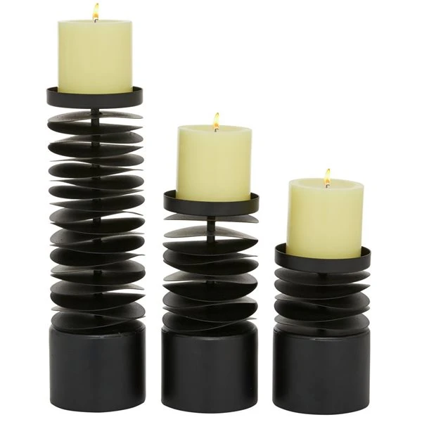 Grayson Lane Set of 3 6-in, 8-in, 12-in Contemporary Candle Holder – Black Metal