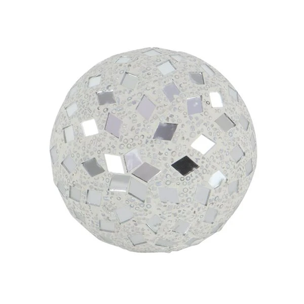 - White decor orbs for a vase or bowl with striking mosaic pattern