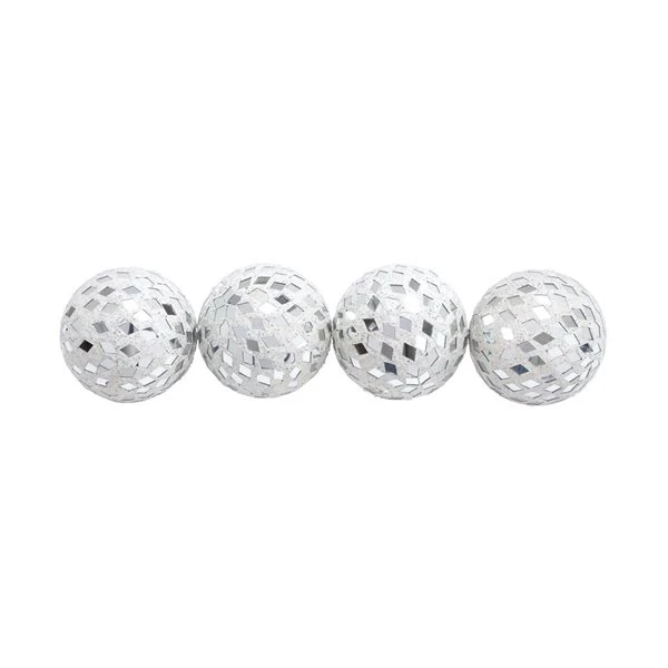 Grayson Lane Set of 4 4-in White Glam Orbs & Vase Filler -Glass –