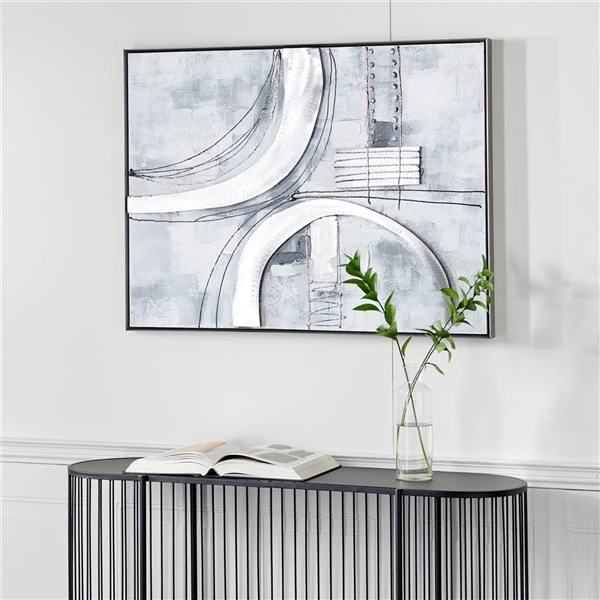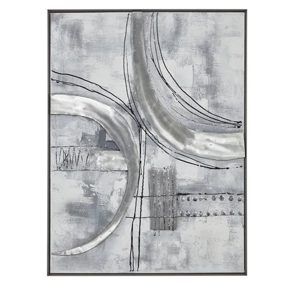- This abstract wall art showcases a combination of textured curves and straight lines
