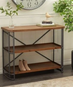Grayson Lane 38-in x 38-in Brown Wood Industrial 3-Tier Shelf
