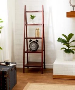 Grayson Lane 21-in x 65-in Maroon Wood 5-Tier Traditional Shelving Unit
