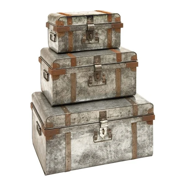 Grayson Lane Silver Metal Storage Trunk – Set of 3