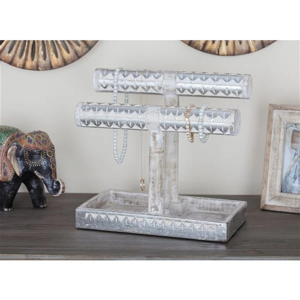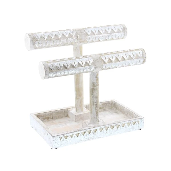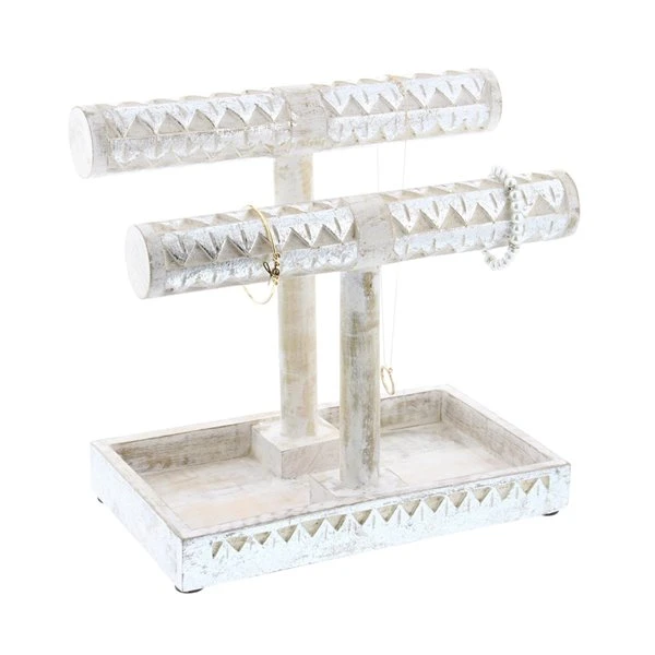 - This jewelry stand features 2 T-shaped holders and a rectangular base
