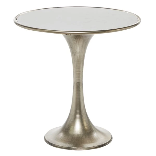 - This round silver accent table is made of durable aluminum and elegant marble