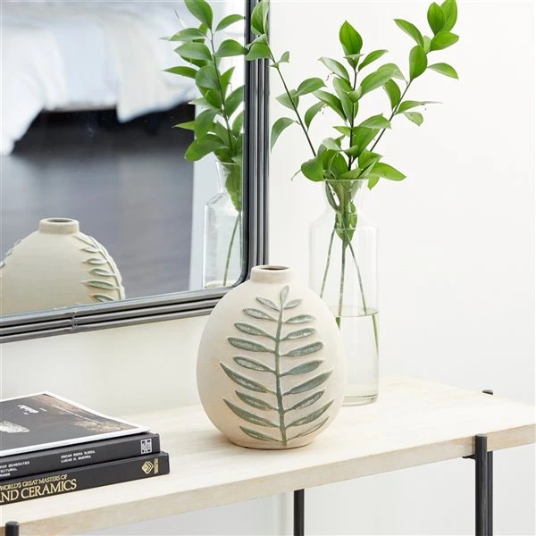 Be the first to review “Grayson Lane Tan Ceramic Vase with Leaf” Cancel reply