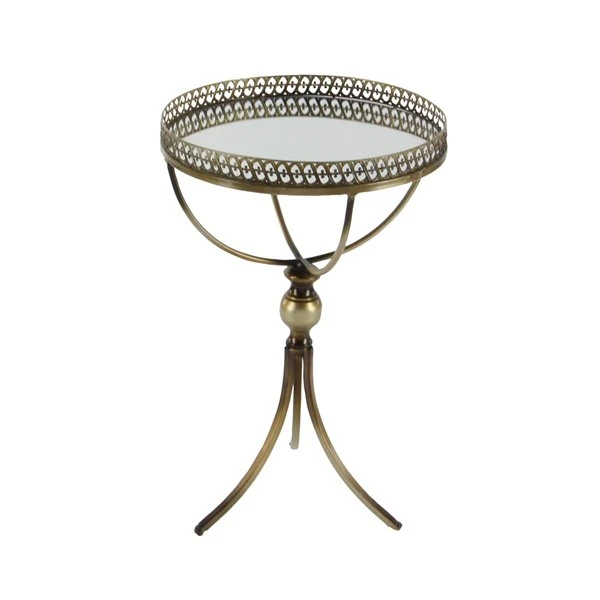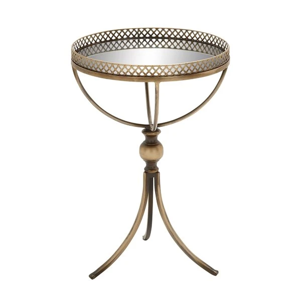 Grayson Lane Traditional Gold Brass Iron with Mirror Round End Table