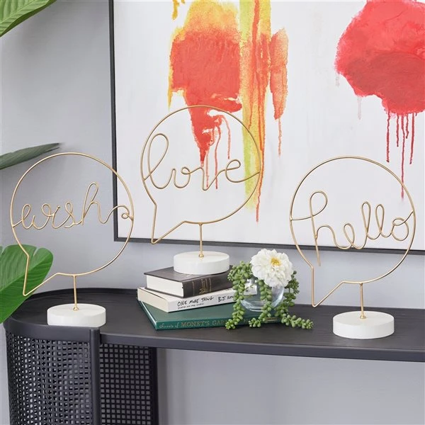Grayson Lane Traditional Gold MDF/Iron Speech Balloons Tabletop Decoration – Set of 3