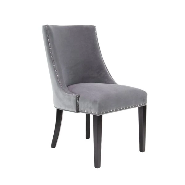 - Features a decorative yet comfortable dining chair with a high curvy back, padded seat and silver studs design