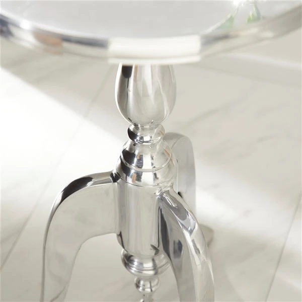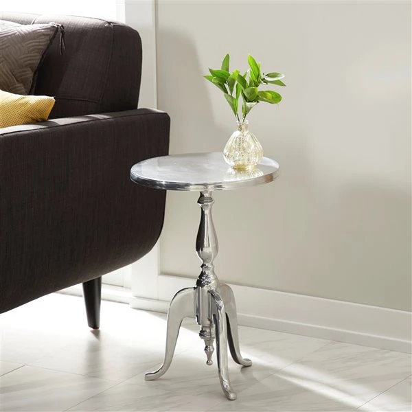 - This side table for living room sports a silver finish that brings sophistication to any traditional-styled interior design