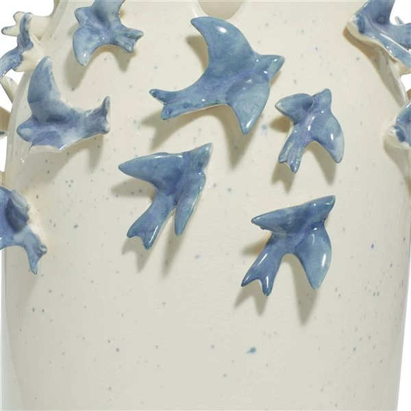 Grayson Lane White and Blue Ceramic Vase with Birds