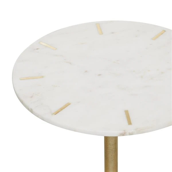 Grayson Lane White and Gold Granite/Marble Round End Table