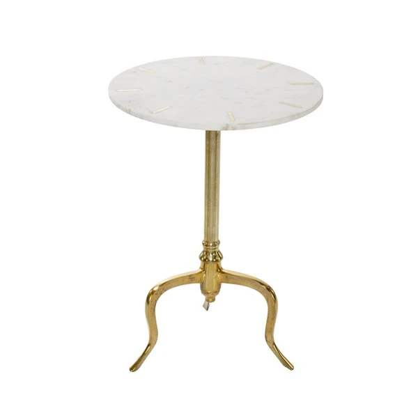 - The marble accent table has a white and gold palette that’s perfect for contemporary spaces