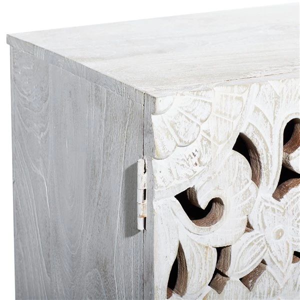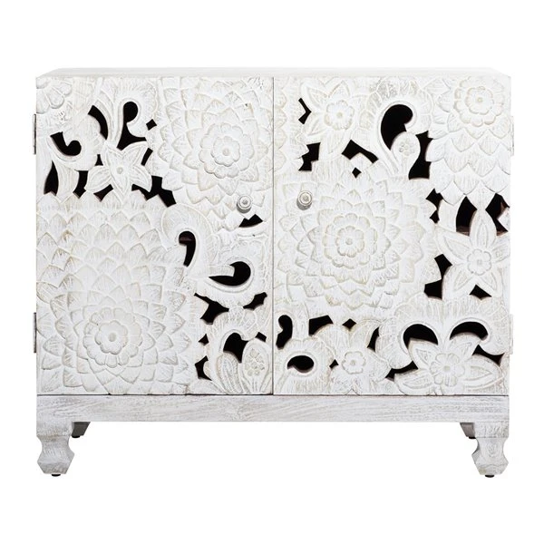 - A rectangular cabinet highlighting 2 cabinet doors with floral patterns and cut-out design