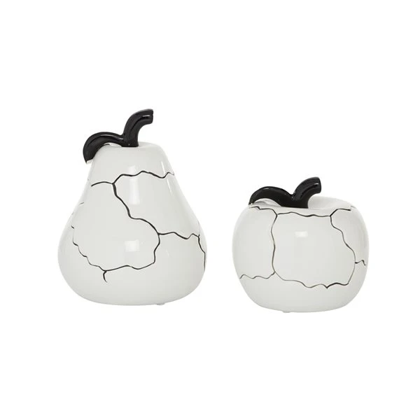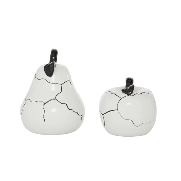 - This contemporary ceramic fruits decor set has a pear and an apple
