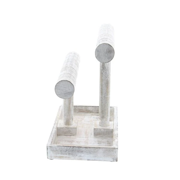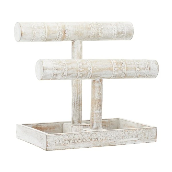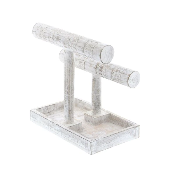 - This jewelry stand features 2 T-shaped holders and a rectangular base