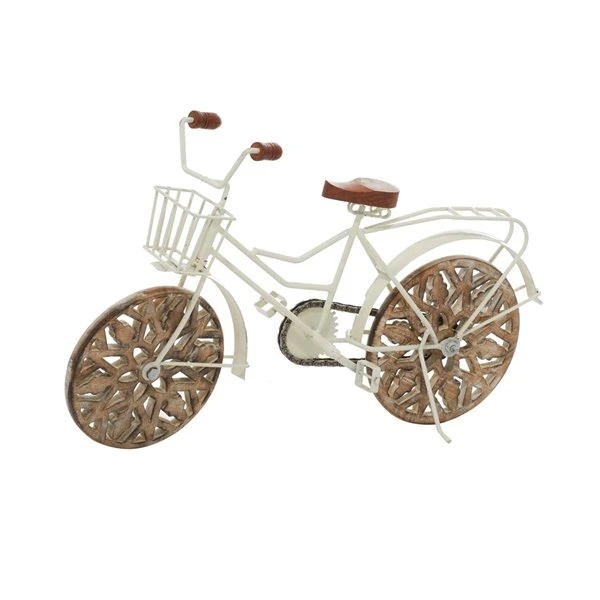 - Features bicycle sculpture that highlights white and brown finishes