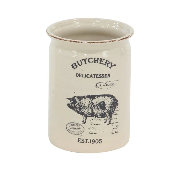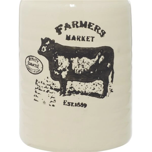 - It has a set of uniformed cylinder vases made from solid porcelain, designed with cow, chicken and pig image prints in black