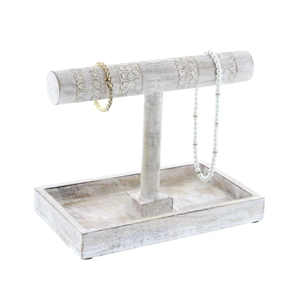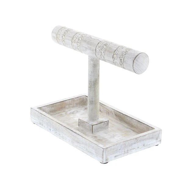- This jewelry stand features a T-shaped holders and a rectangular base