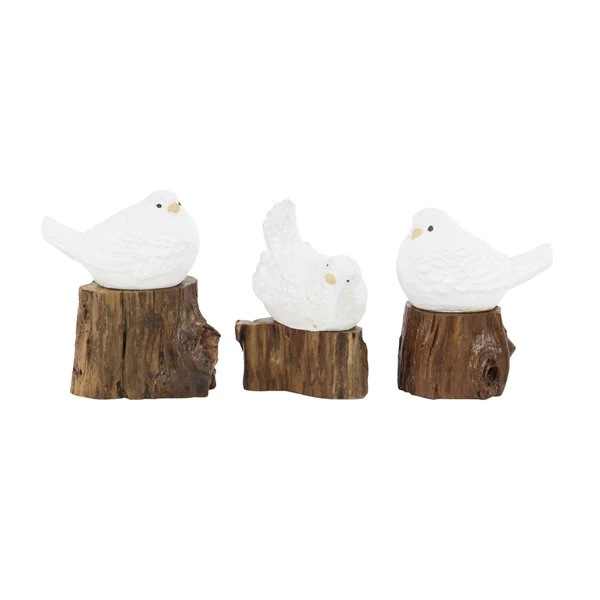 Grayson Lane White Teak Wood Bird Sculptures – Set of 3