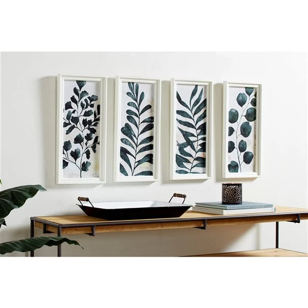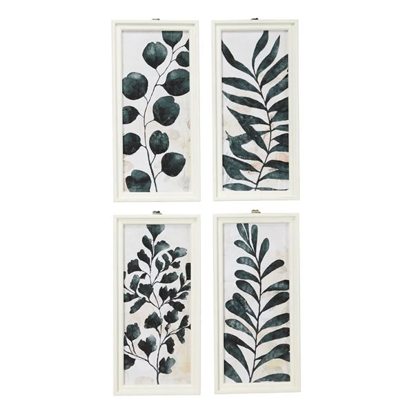 - 4 symmetrical wall art prints with different styles of plants