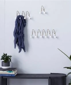 Grayson Lane Glam Gold/Pearl White Iron Decorative Falling Loop Design Screw Wall Hooks – Set of 3