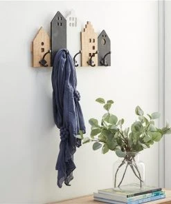 Grayson Lane Brown/Grey Coffee Chinese Fir 3-Tier Decorative 3 Screw Wall Hooks – Set of 1