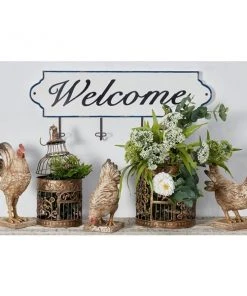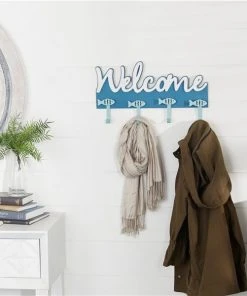 Grayson Lane Coral Blue Wood Fish-Themed Welcome Decorative 4 Screw Wall Hooks – Set of 1