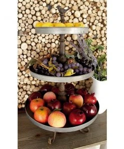 GRAYSON LANE 28 In. x 16 In. Farmhouse 3 Tier Tray Stand Silver Iron