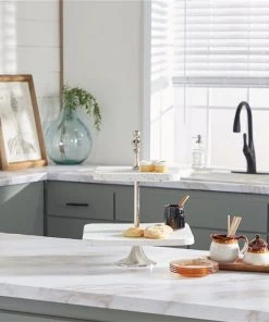 Grayson Lane 23-in x 20-in Contemporary White Marble and Ion 3 Tier Tray Stand