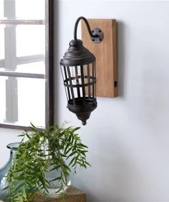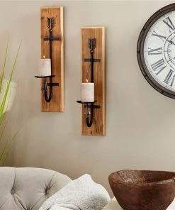 Grayson Lane 6-in x 24-in Brown Industrial Wall Mount Candle Holders – Set of 2