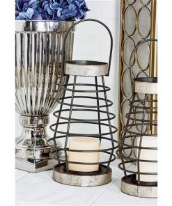 Grayson Lane 1 Candle Metal Lantern Coastal Candle Holder – Grey