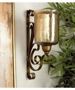 Grayson Lane 1 Candle Gold Glass Pillar Rustic Candle Holder