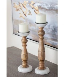 Grayson Lane 2 Candle Brown Wood Pillar Contemporary Candle Holder – Set of 2