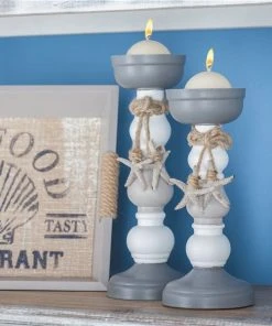 Grayson Lane 2 Candle Grey Wood Pillar Coastal Candle Holder – Set of 2
