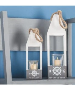 Grayson Lane 2 Candle Grey Wood Lantern Coastal Candle Holder – Set of 2