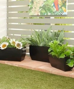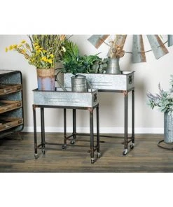 Grayson LaneĀ 19-in W xĀ 29-in H Farmhouse Grey Metal Rectangle Planters on Wheels – Set of 2