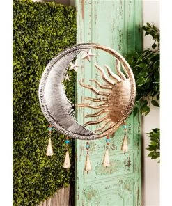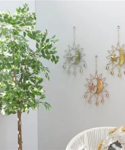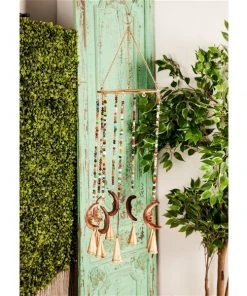 Grayson LaneĀ 19-in Gold Metal Crescent Moon Wind Chime with Multicoloured Glass Beads