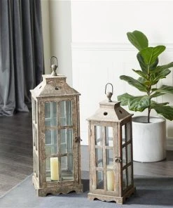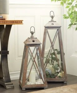 Grayson Lane 2-Candle Traditional Wood Lantern Candle Holder – Set of 2