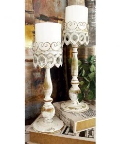 Grayson Lane 2-Candle Gold Polystone Pillar Candle Holder – Set of 2