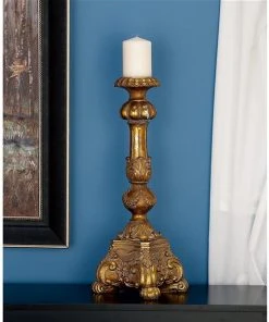 GRAYSON LANE 22 In. x 8 In. Rustic Candlestick Holders Gold Polystone