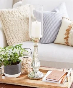 Grayson Lane 21-in x 4-in Traditional Candle Holder – Silver Glass