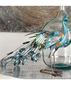 Grayson LaneĀ 20-in xĀ 31-in Turquoise Iron Eclectic Peacock Garden Sculpture