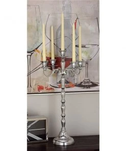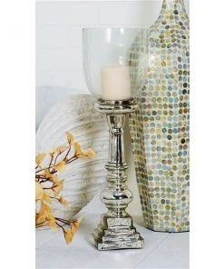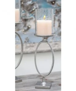 Grayson Lane 22-in x 6-in Contemporary Candle Holder – Silver Aluminum