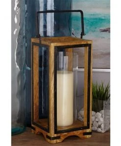 Grayson Lane 22-in x 8-in Traditional Candle Holder Lantern – Natural Brown Mango Wood
